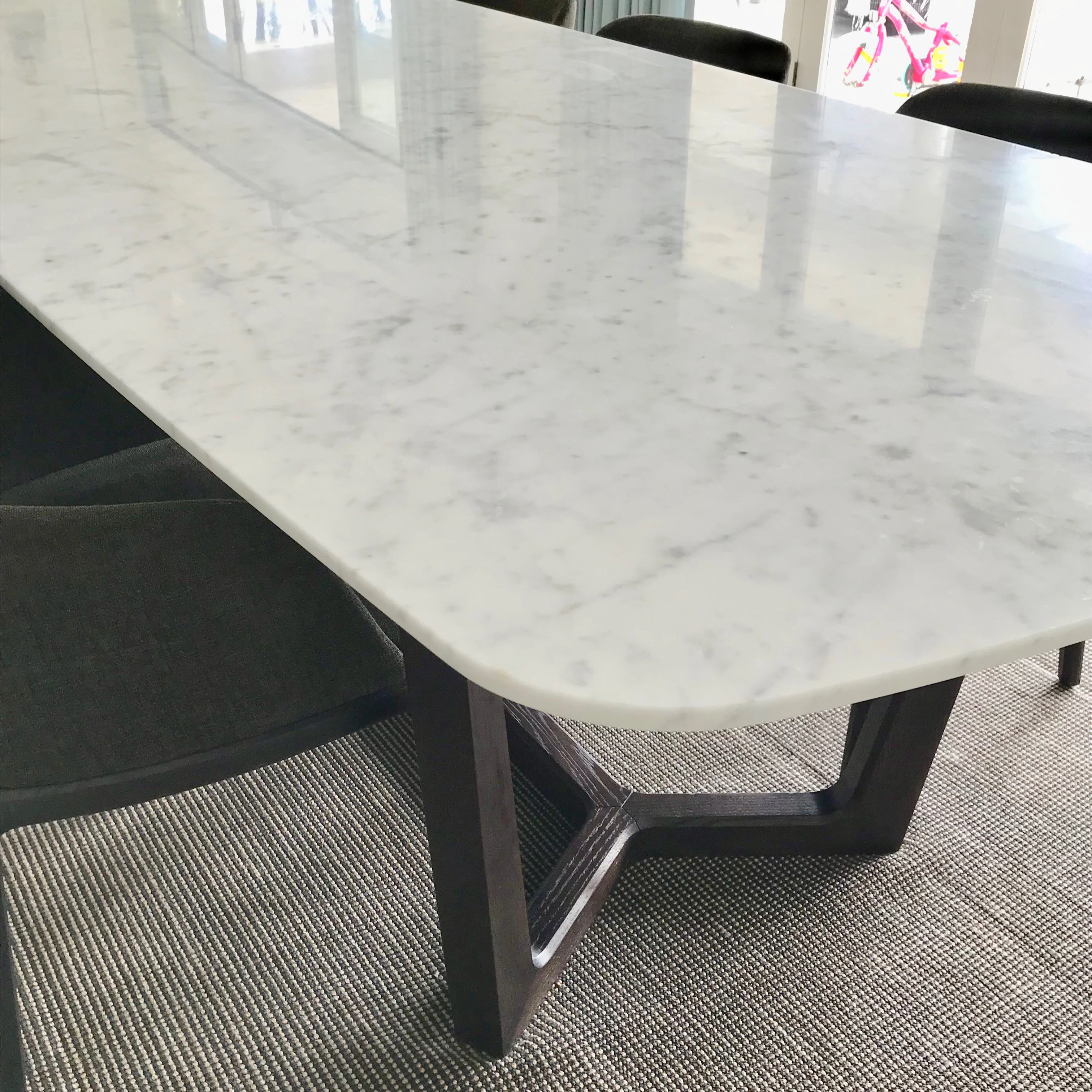 Emmanuel Gallina's Concorde Table is certain to become the absolute centre of attention in any dining setting. Soft shapes interpreted with essential style have resulted in the creation of this remarkable piece. Available constructed completely from wood or with a marble top. The table we have on offer has a Spessart