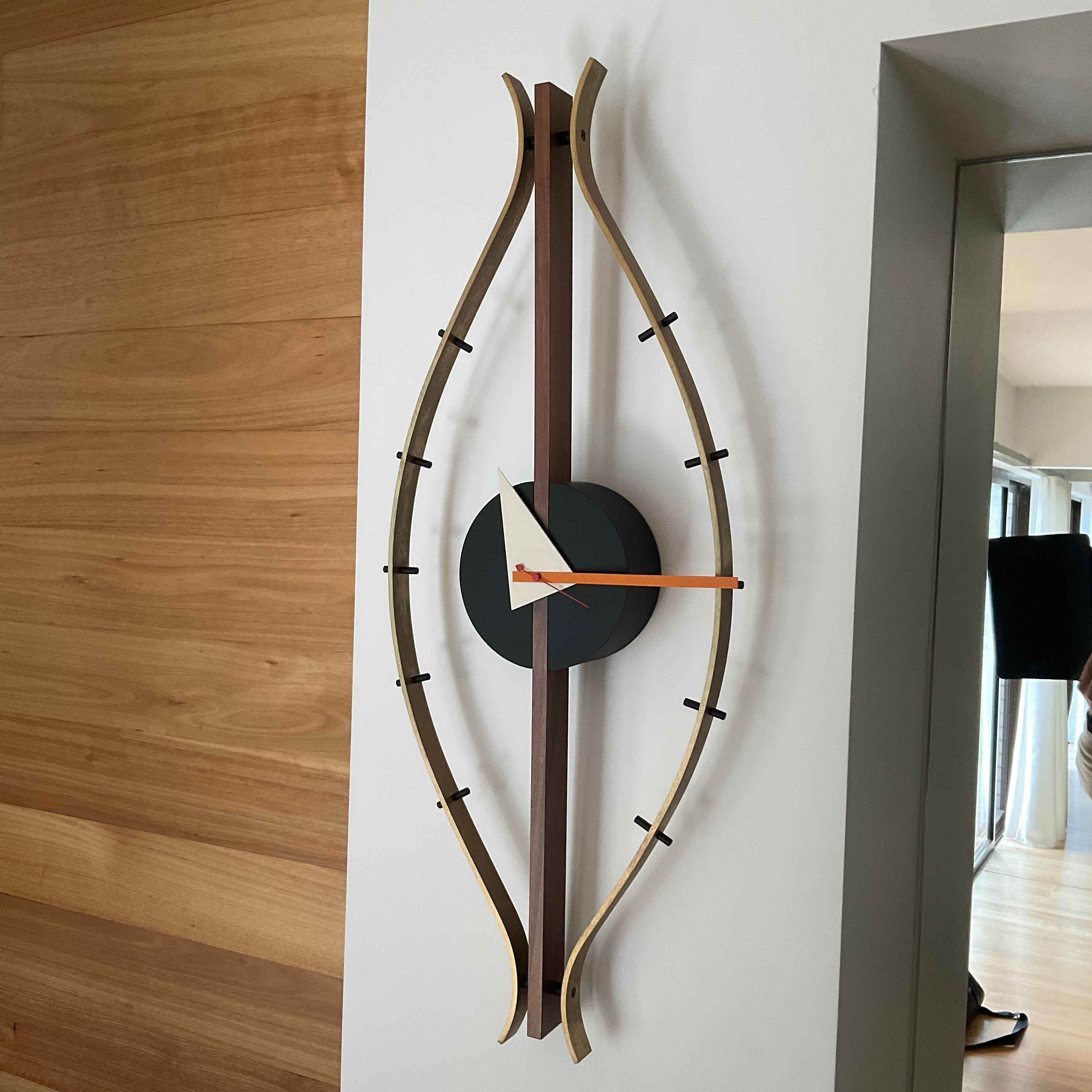 In 1947, the American designer George Nelson was commissioned to create a collection of clocks. Nelson analysed how people used clocks and concluded that they read the time by discerning the relative position of the hands, which made the use of numbers unnecessary. Furthermore, since most people wore wristwatches, he assumed that clocks had become more of a decorative element for interiors.