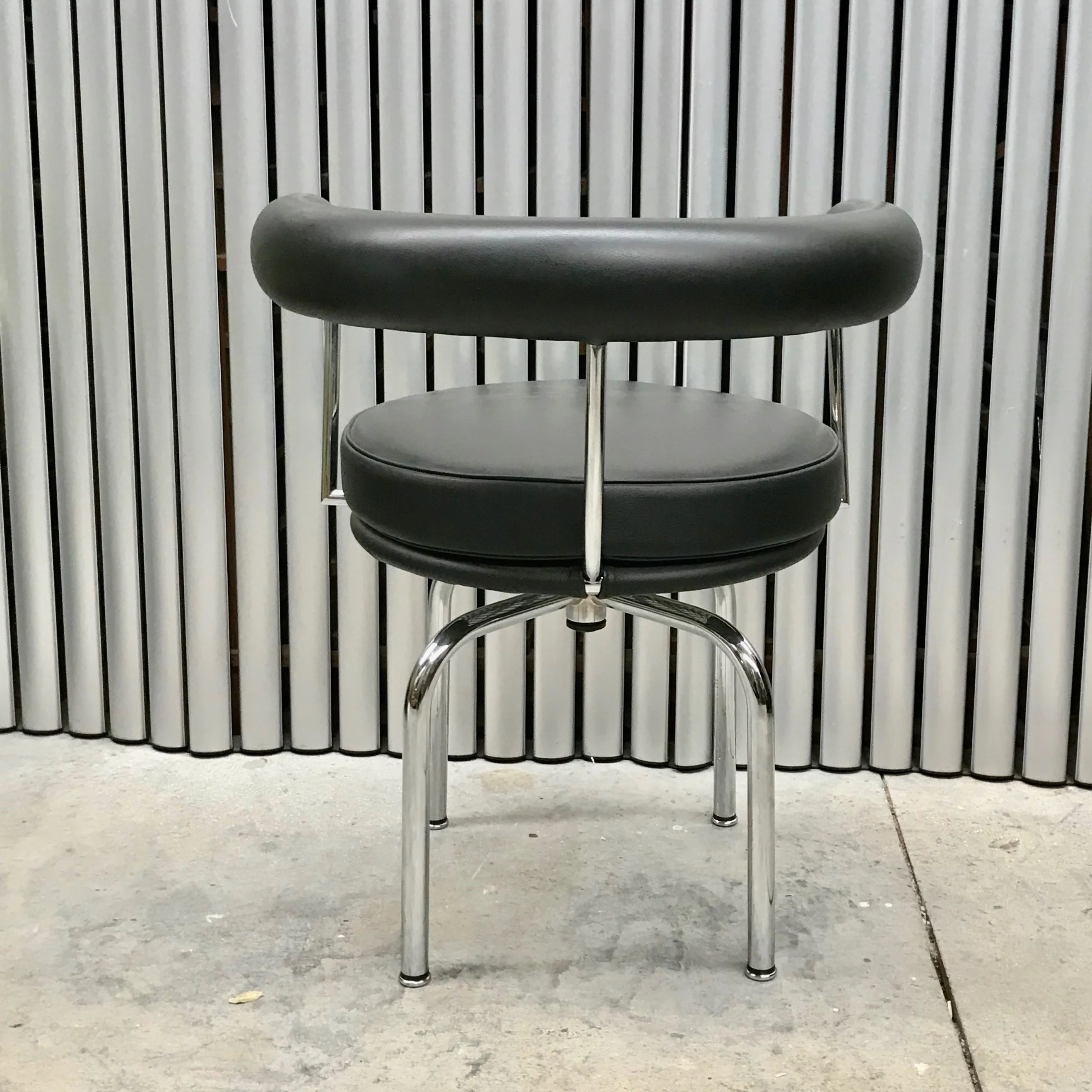 Although the LC7 Swivel Chair is part of the Cassina LC Collection, its designer is not Le Corbusier, the designer who was largely responsible for the other furniture of the series, but his younger colleague Charlotte Perriand. Originally designed for Perriand's private apartment in Paris she however exhibited the round swivel chair at the 1929 Salon d'Automne together with the LC armchairs, sofas and tables: and thus it was added to the family.