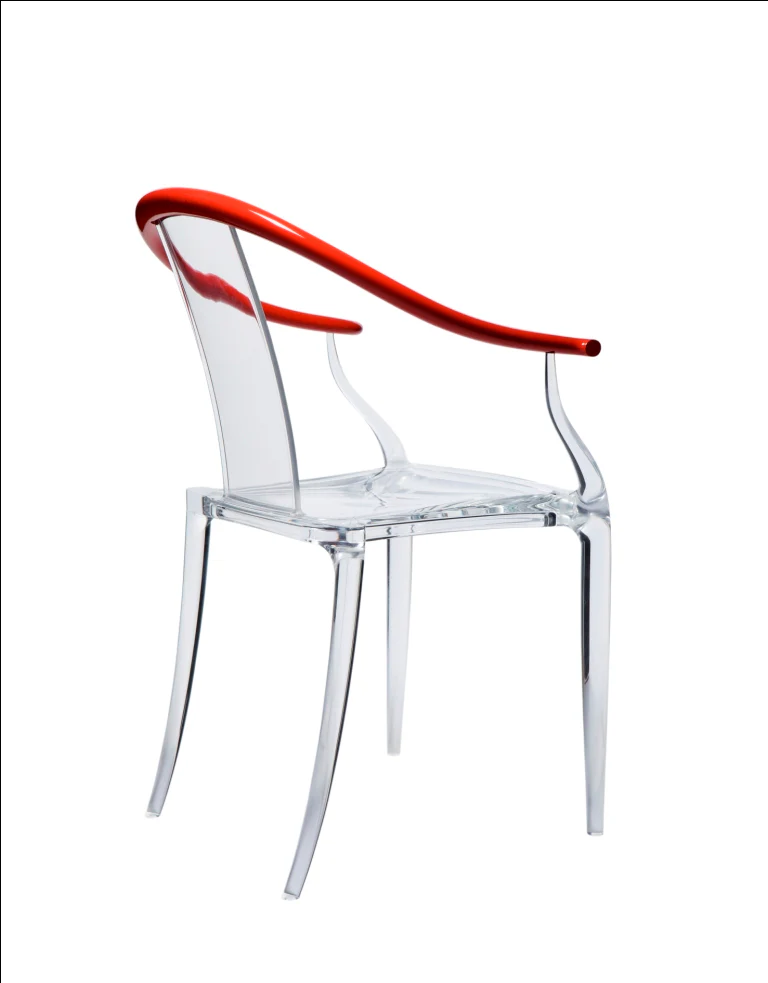 The MI MING CHAIRS are by Philippe Starck for XO. The chairs are made in Italy and come in Clear with Red arm, Clear with Black arm and Clear with Silver arm.