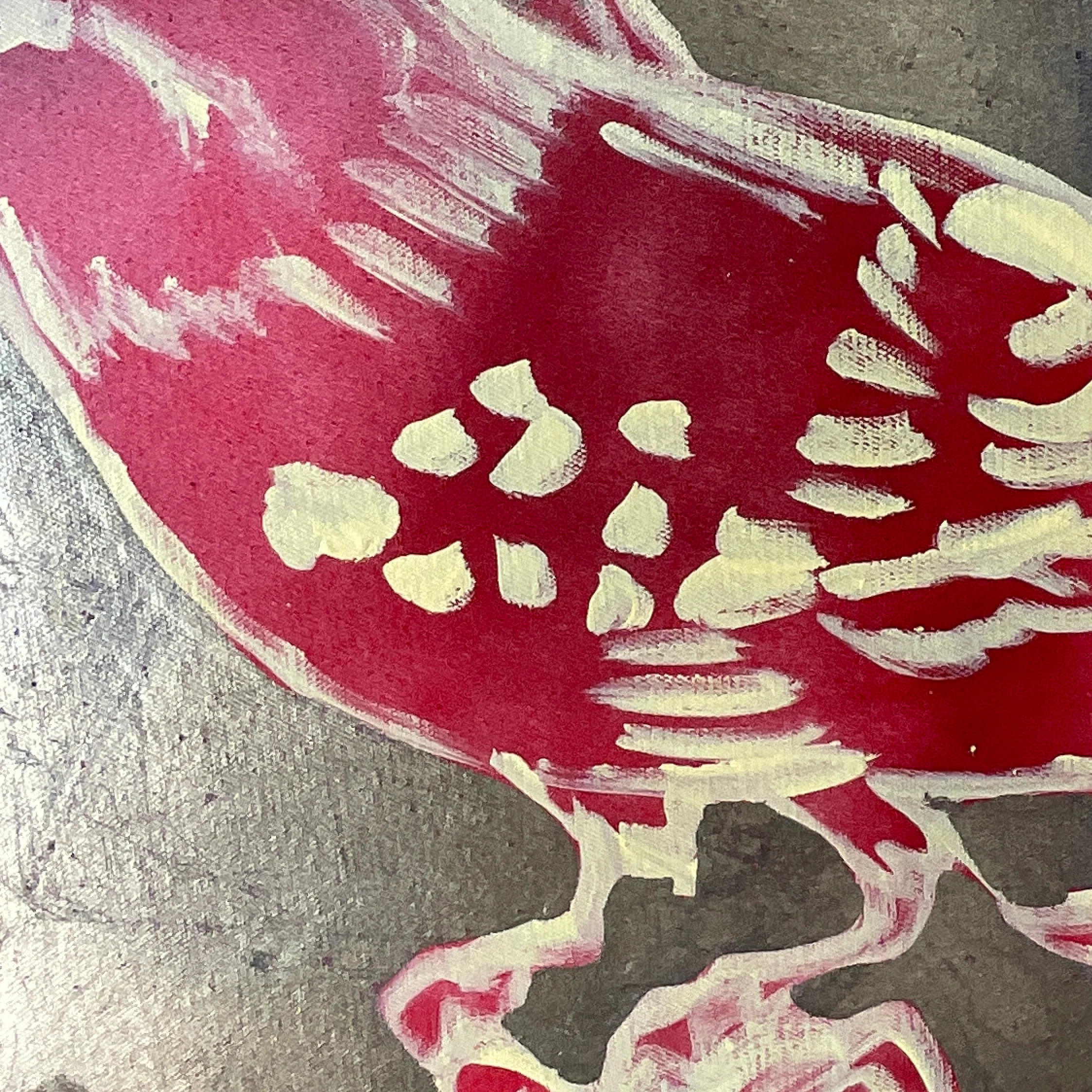 This piece is part of the Female Nude Series: These paintings often feature fashion models or celebrities in commanding, stylized poses, blending contemporary fashion aesthetics with a Pop Art influence reminiscent of Andy Warhol.