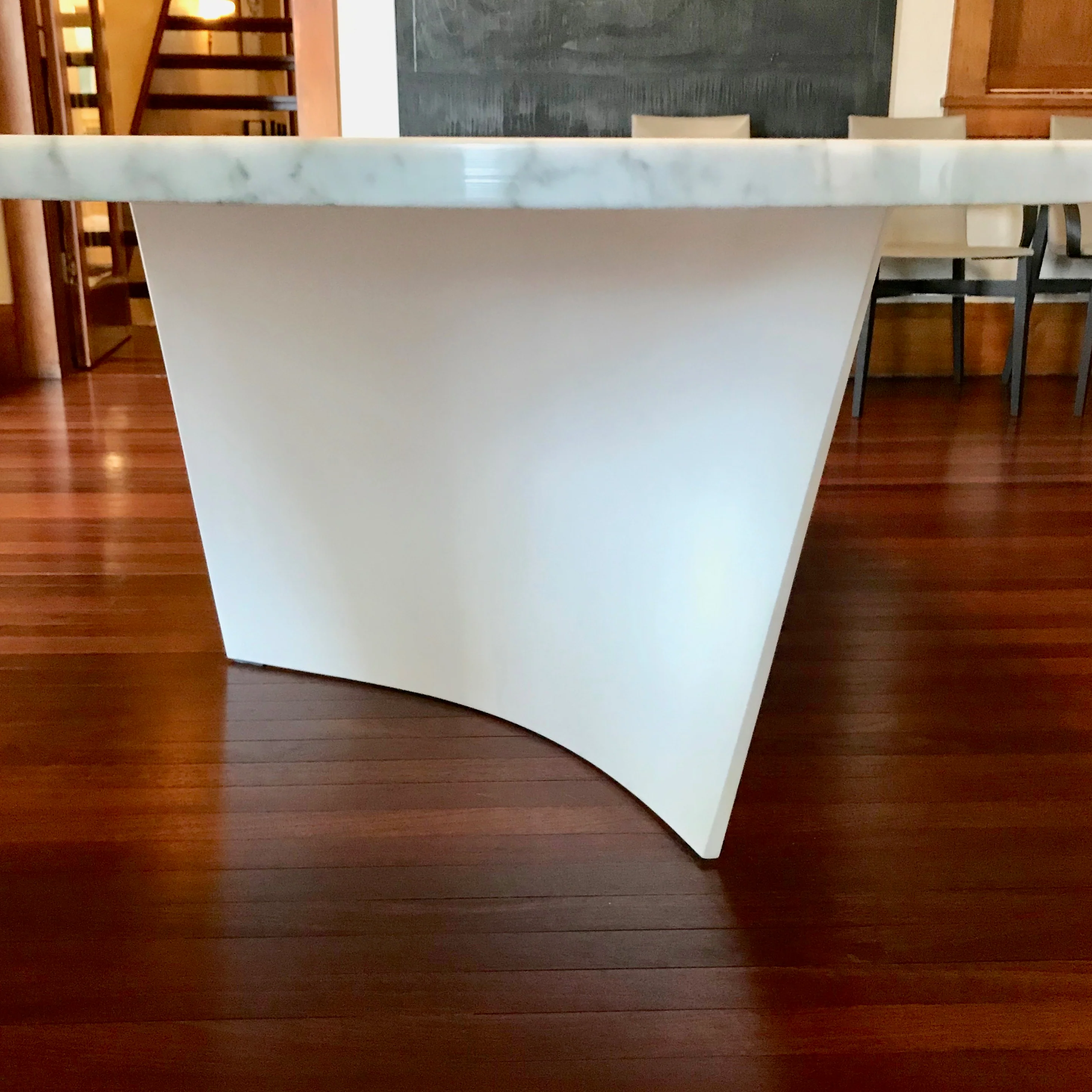 The table we have on offer has a Matt White Cristalplant base and Carrera Marble Top