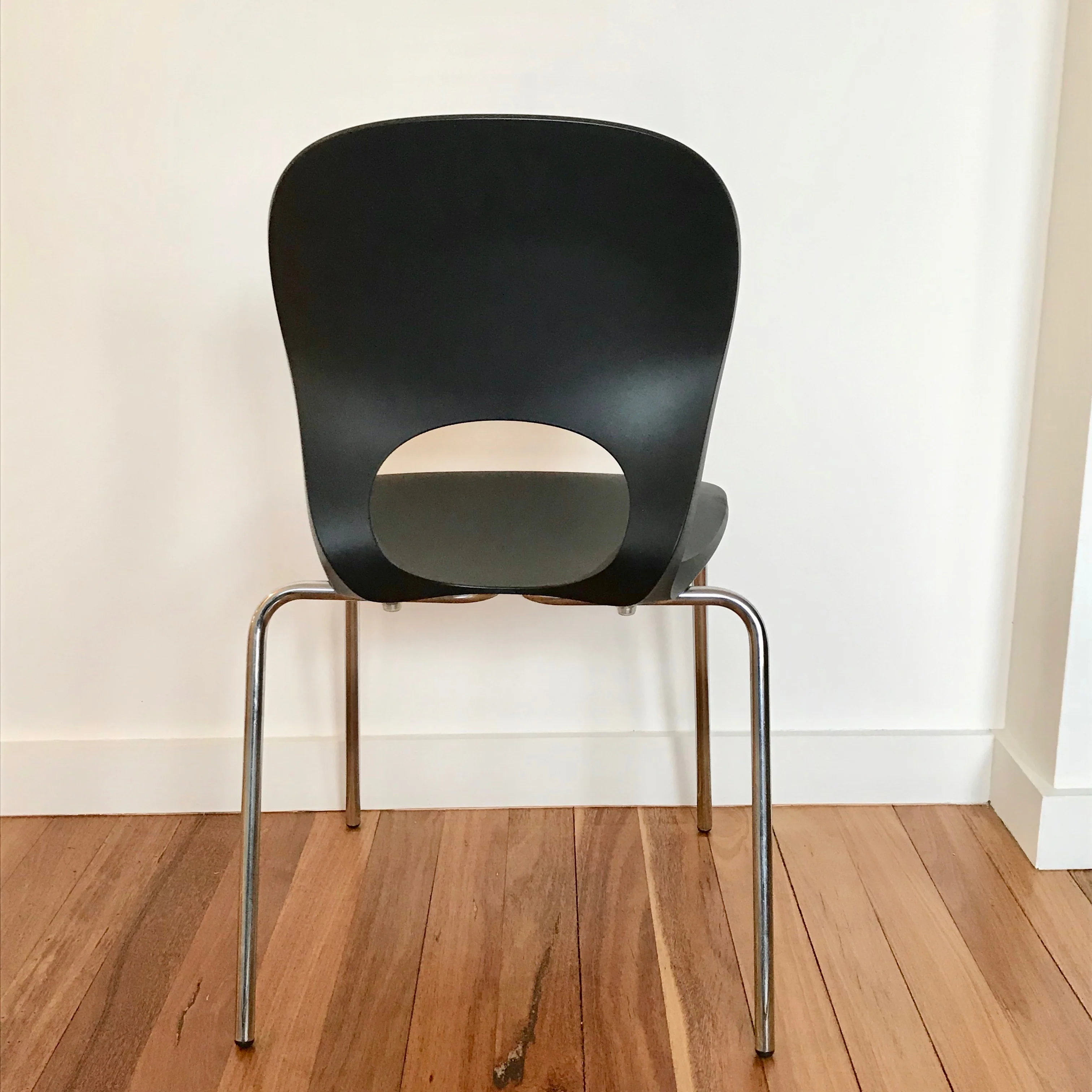 Perhaps young designer Angelo Natuzzi would never have imagined such great success for Pikaia, a chair designed in 2007, which has become a true collection of chairs for different types of area: the home, the contract furnishing sector and community areas. Certainly one of the reasons for this acclaim from critics and the public can be found in the performance of its back: with its subtle appeal and surprisingly versatile and resistant nature. Its organic shape and the technical features of the polyurethane employed in its production let it perfectly adapt to the shape and weight of the body, for an exceptional sensation of comfort. The chairs we have on offer are in black with polished metal legs.