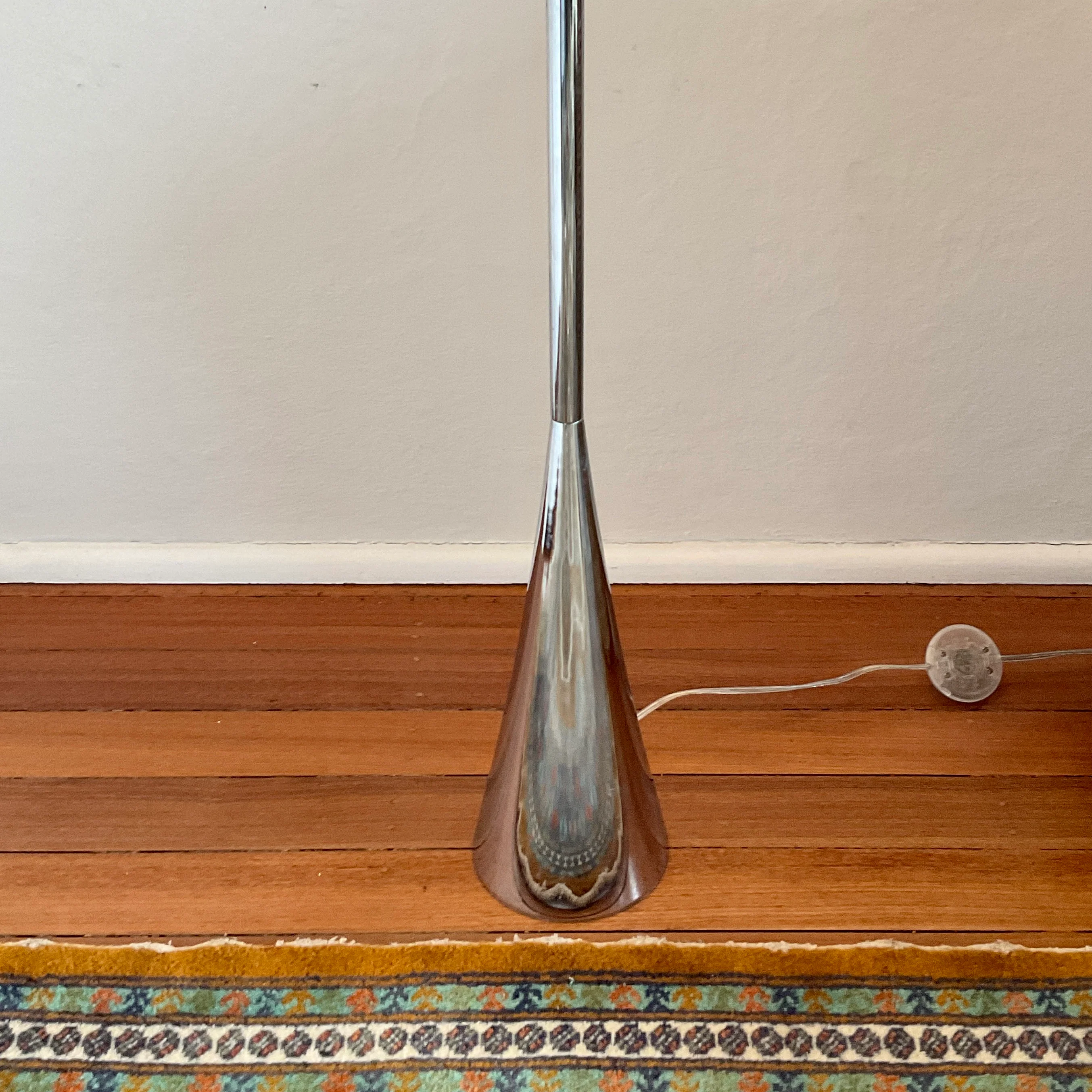 The floor lamp we have on offer has a polished chrome base with parchment shade.