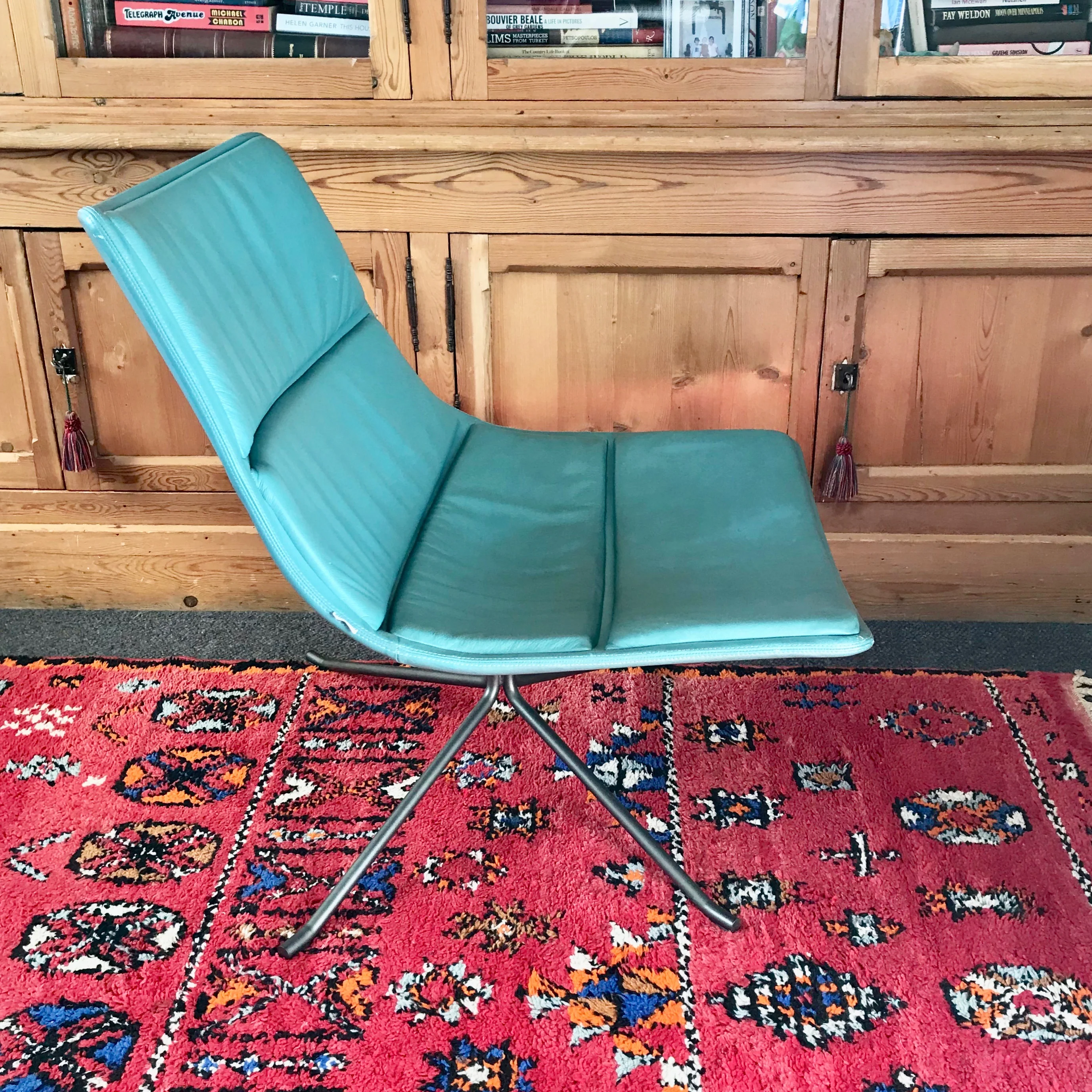Zanotta pieces are the epitome of contemporary European furniture design, are of peerless quality, and exhibit detailing and execution of an unrivalled standard. In a world of temporary pleasures, Zanotta create beautiful furniture that remains a joy forever. Dressed in the most stunning and tactile high-grade “Pelle Frau” leather option in an eye catching turquoise, with Gunmetal framework.
